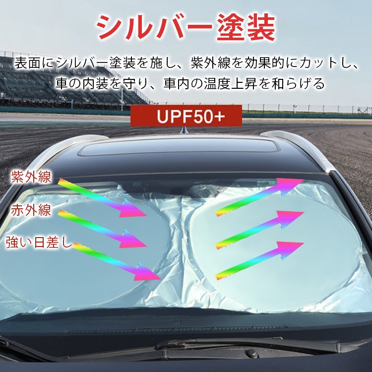 【車用サンシェード】断熱、遮光、シルバー塗装、装着簡単、内装劣化防止、車内の温度上昇を和らげる、折り畳み可能、コンパクトに収納できる